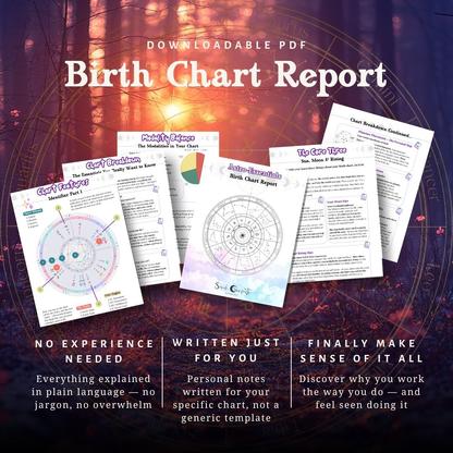 A personalised birth chart report written especially for you — in plain language, with everything explained so you can genuinely understand it.