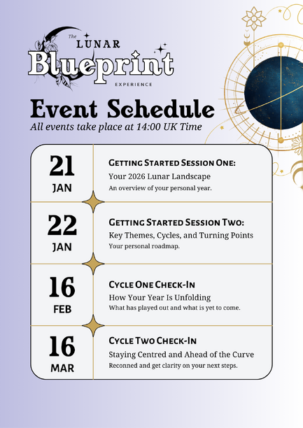 This isnโt about predictions or guarantees. The Lunar Blueprint gives you a map of the energetic terrain, the themes, the timing windows, and the areas of life that will be most active. Itโs a supportive guide, not a fixed outcome.